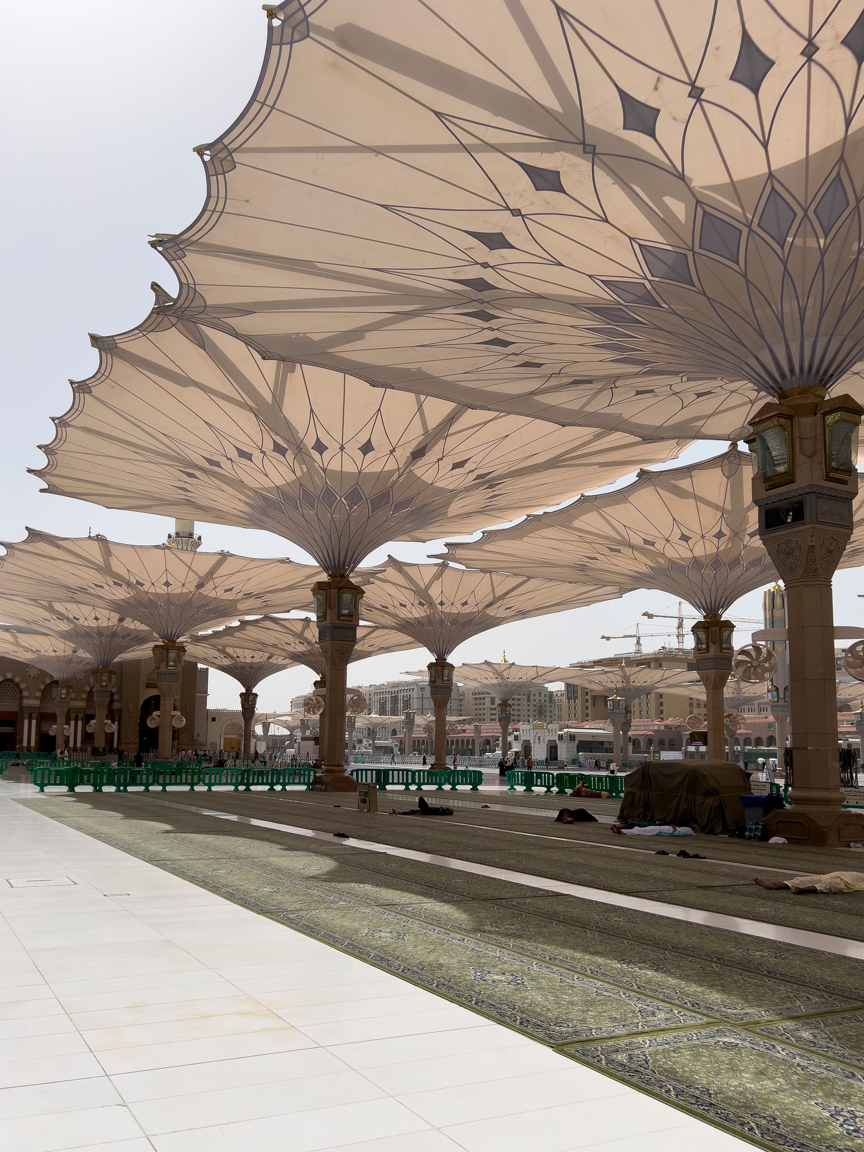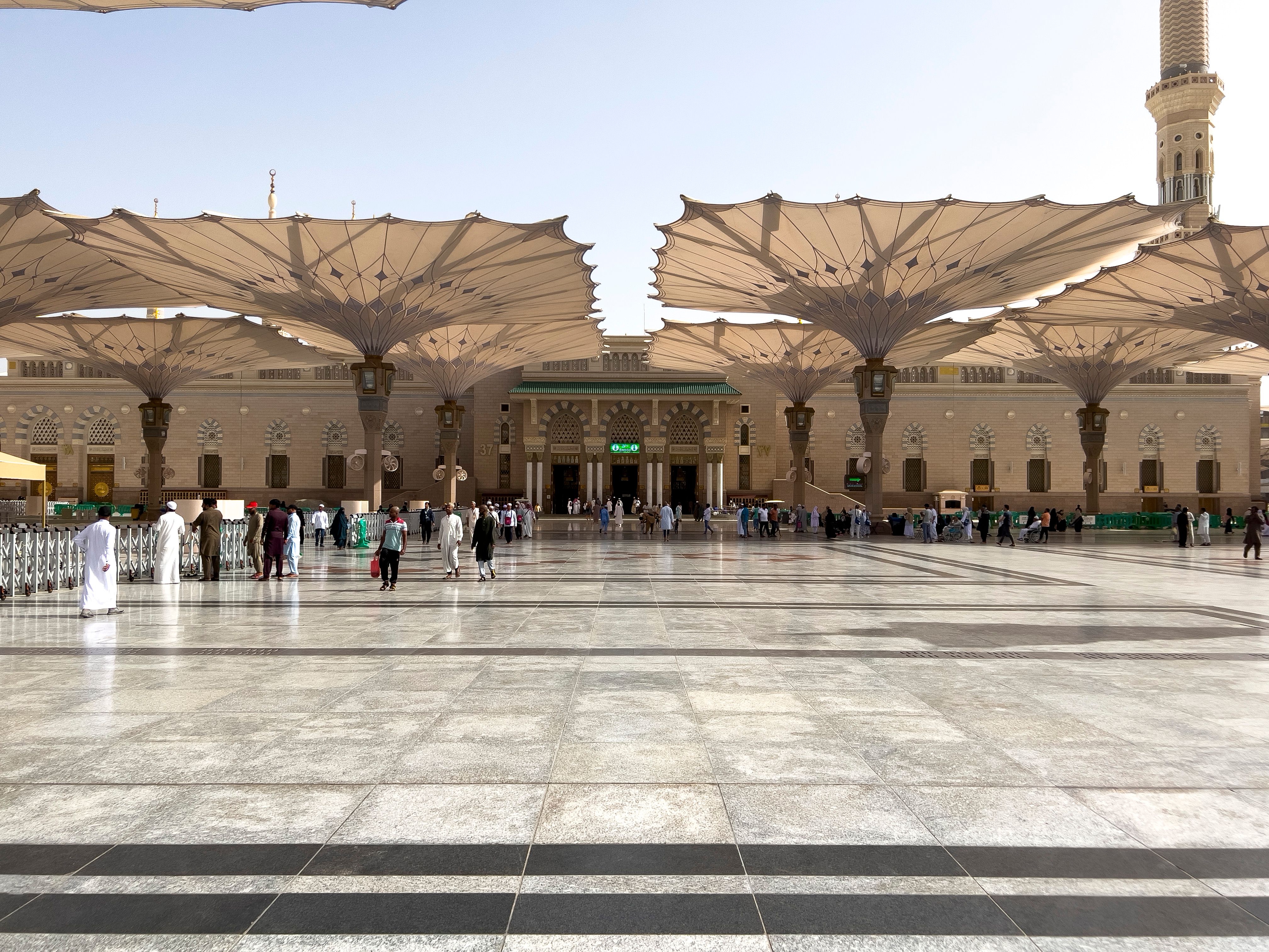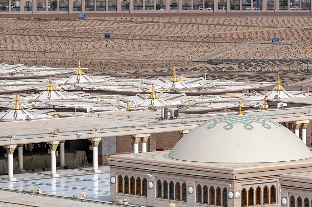 Many men and women, from infants to adults, visit the Prophet's Mosque, which is a pilgrimage. The Kingdom gives extra importance to guarantee the safety and welfare of these visitors, alleviate their problems, and remove obstacles they encounter. To shield the people from the sun and to protect them from danger when it rains, this is one service available to them.