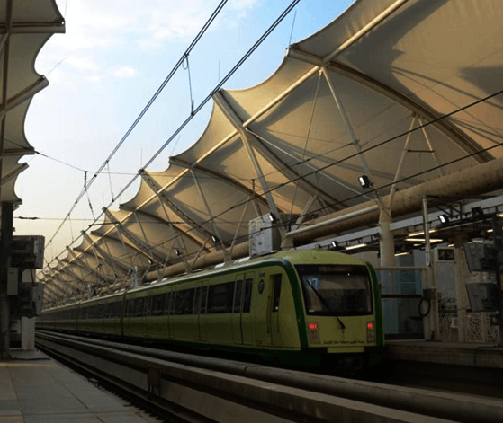 This train connects the southern part of Mina (Jamarat Area) to the southeastern area of Arafah, allowing pilgrims to move easily to the holy sites. The train serves three stations, which are Arafah, Muzdalifah, and Mina; operation begins from Jamarat Station, running through Mina and Muzdalifah to Arafah at speeds between 80 and 120 km/h. It employs automatic operations in the control of trains from a central operation and control center without requiring a driver. Each train has twelve engines and carries three hundred pilgrims in any one trip. Its overall capacity is seventy-two thousand passengers per hour. Access to the train is provided by means of ramps, elevators, staircases, and computerized gates.