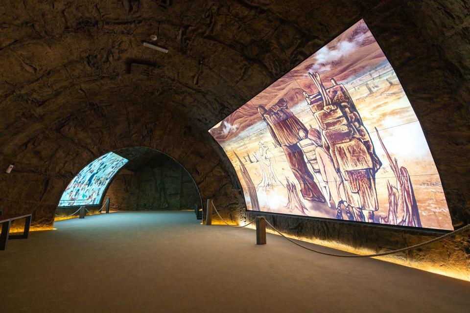 The exhibition details the history of the kiswah, that is, the cloth covering that envelopes the Ka'bah, the stages and techniques involved in weaving it, and other Qur'anic verses and inscriptions that are woven into it.