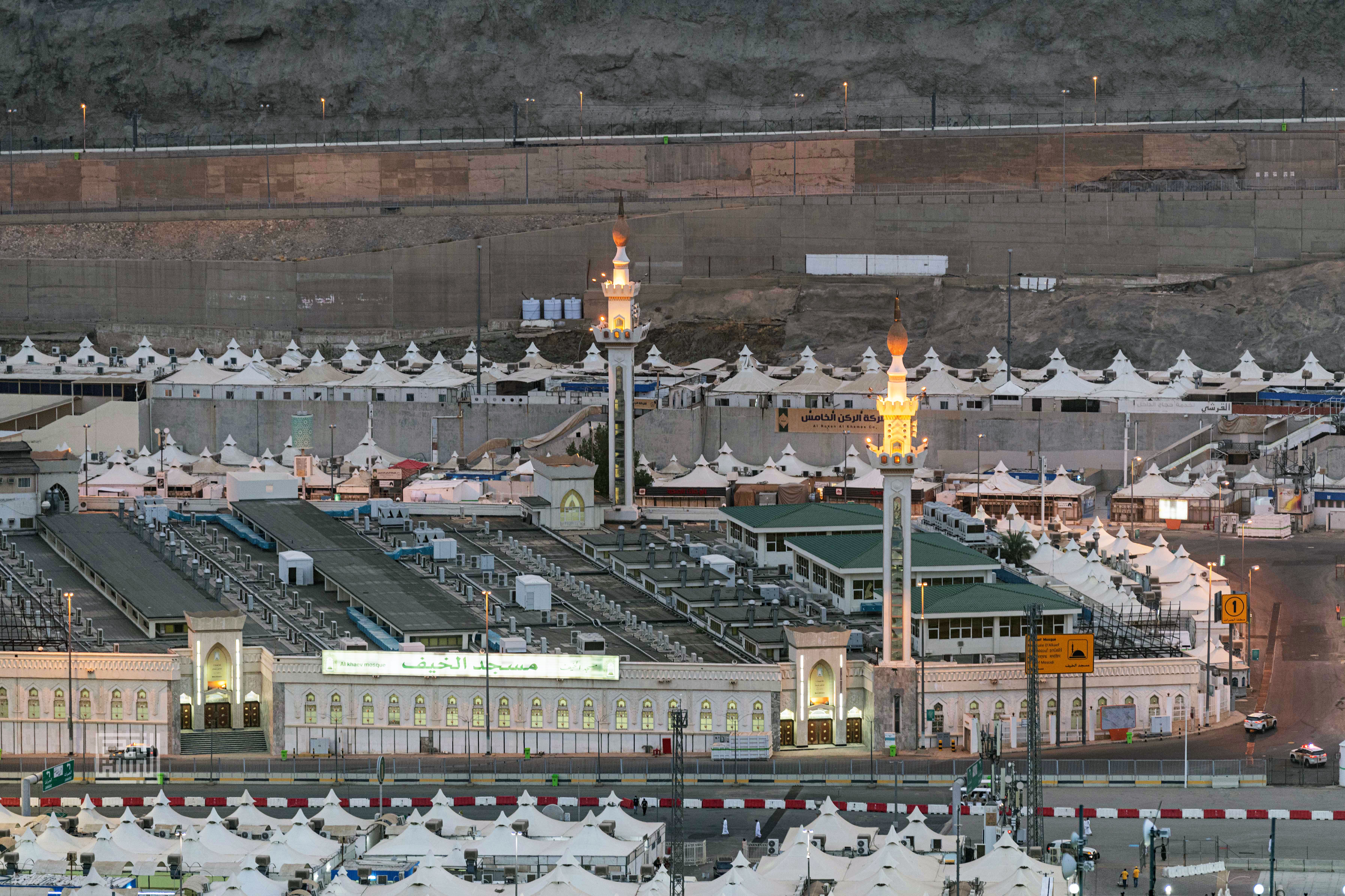 A stage of the Hajj pilgrimage. It is characterized by white tents and was recently awarded the Guinness World Record for the largest tent city in the world. It offers various services, including the Mashaer Train, accommodation, catering, transportation, integrated energy system, and interconnected road network. Pilgrims generally dwell here on the eighth of Dhu al-Hijjah (Day of Tarwiyah) before returning for three days of Tashreeq (the eleventh, twelfth, and thirteenth of Dhul-Hijjah) and the Day of Nahr (the tenth of Dhu al-Hijjah). Mina marks the beginning of Hajj. It is highly honored due to the religious history. It is known as 7 kilometers northeast of the Holy Mosque and falls inside the boundaries of the Haram between Makkah and Muzdalifah. It is well-known for both historical events and archaeological sites. Besides some old wells, like the Kadana well, is the continuation of "Ain Zubaida". The Arab Market, which derived its name from the Arab pilgrims exchanging markets between the tenth and thirteenth days of Dhu al-Hijjah, is one of the recognized historical seasonal markets of Mina.